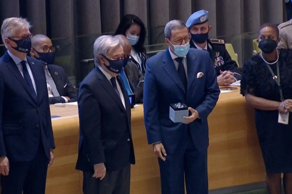 Lors d’une cérémonie à l’occasion de la Journée internationale des Casques Bleus, célébrée le 29 mai de chaque année, l’ambassadeur, représentant permanent du Maroc auprès de l’ONU, Omar Hilale, a reçu la médaille Dag Hammarskjold des mains du Secrétaire général de l’ONU, Antonio Guterres, au nom des vaillants casques bleus marocains, en reconnaissance de leur sacrifice, leur courage, leur abnégation et leur grand sens de la responsabilité.