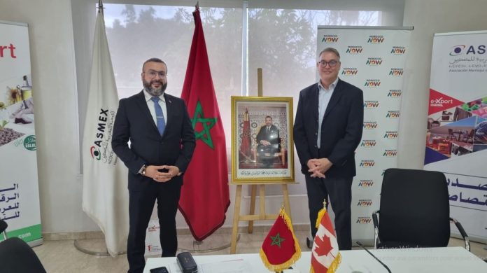 Avec la participation active du Président de la délégation régionale de l’ASMEX dans la région de Rabat-Salé-Kénitra, M. Amine Laghidi, à l’origine de ce partenariat Marocco Canadien qui a insisté sur l’orientation des achats canadients et des exports Marocains vers les produits d’origine des Zones Sinistrées par le tremblement de terre. À savoir Al Haouz, Chichaoua, Ouerzazat, Marrakache, Agadir. Dans un effort concret de relance de l’activité économique Regionale et Économique de manière dynamique et Responsable autour de produits tels : Cosmetiques, Huiles, Plantes Médicinales, Produits Agricoles, alimentaires et du terroir.