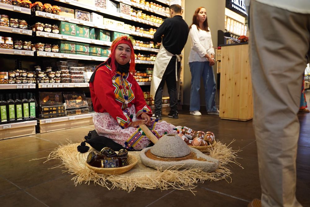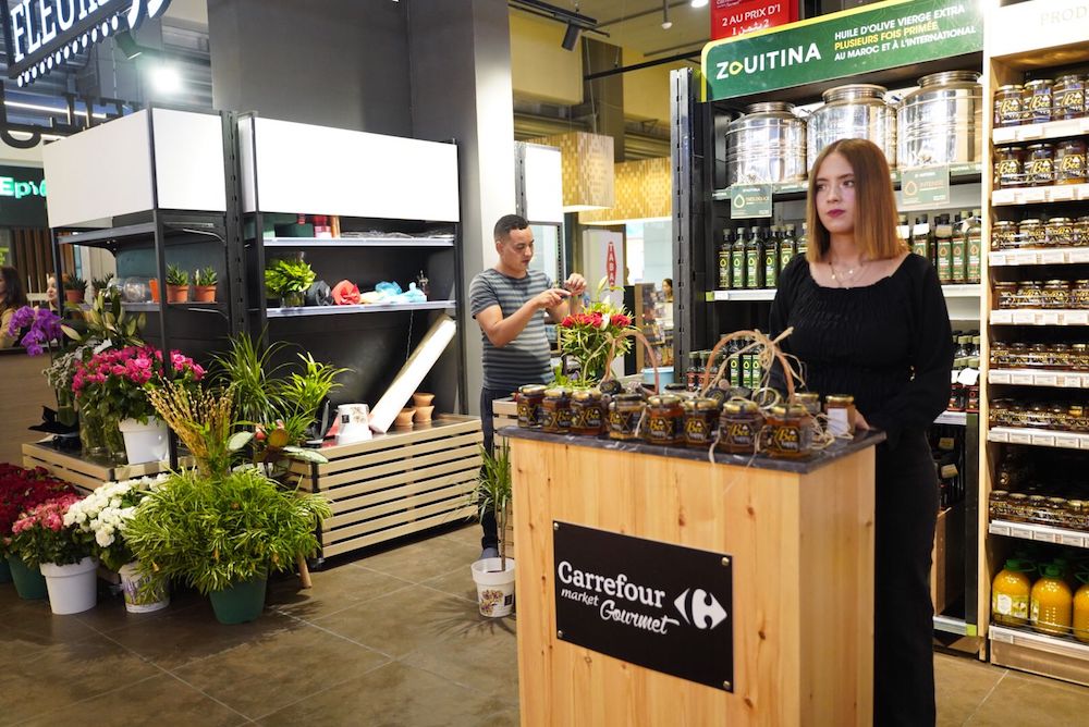 À l’intérieur de ce Carrefour Market Gourmet totalement métamorphosé, tout a été repensé pour éviter de se sentir dans une grande surface. L’architecture, le design et la décoration du magasin ont été étudiés dans les moindres détails. À cette ambiance résolument contemporaine, le groupe a apporté une touche locale par l’intégration de matériaux et de motifs typiquement marocains (étagères en bois, murs ornés de motifs moucharabieh, lumières tamisées, ambiances sonore et olfactive…) afin de restituer le plaisir sensoriel des courses que la clientèle marocaine continue d’apprécier dans les souks. Au fil d’un parcours client savamment étudié, mises en scène et assortiments sont là pour rappeler l’esprit de la consommation d’antan et le terroir.